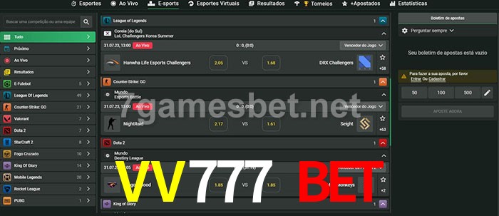O VV777 Bet oferece uma grande seleção de opções de apostas em e-sports com probabilidades competitivas